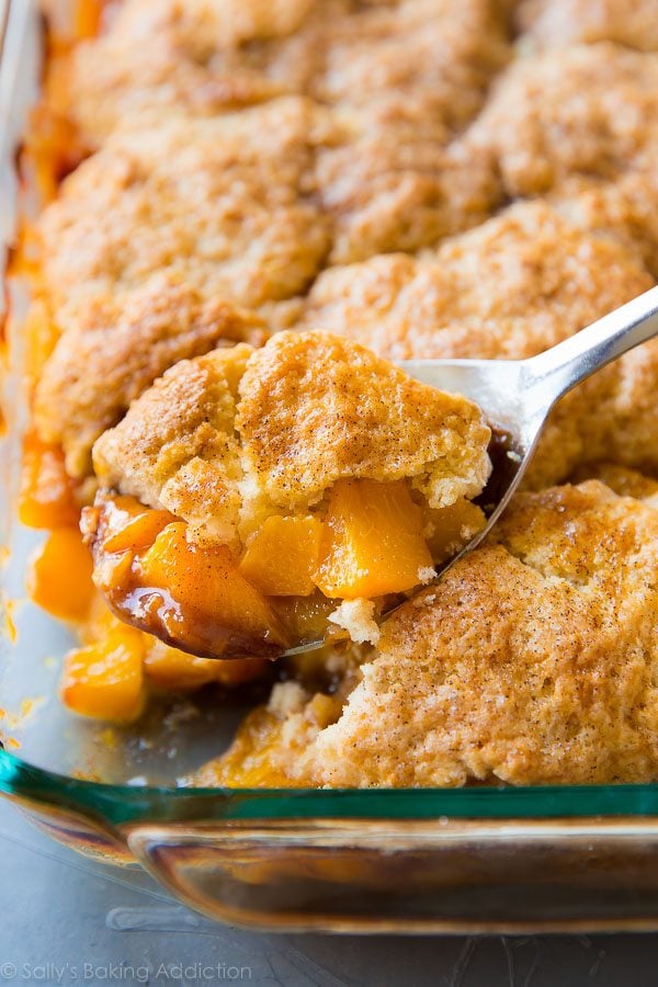 Juicy peaches and buttery biscuits come together in this classic summer dessert. Cut the peaches into chunks rather than slices, so they hold shape and texture in the oven.