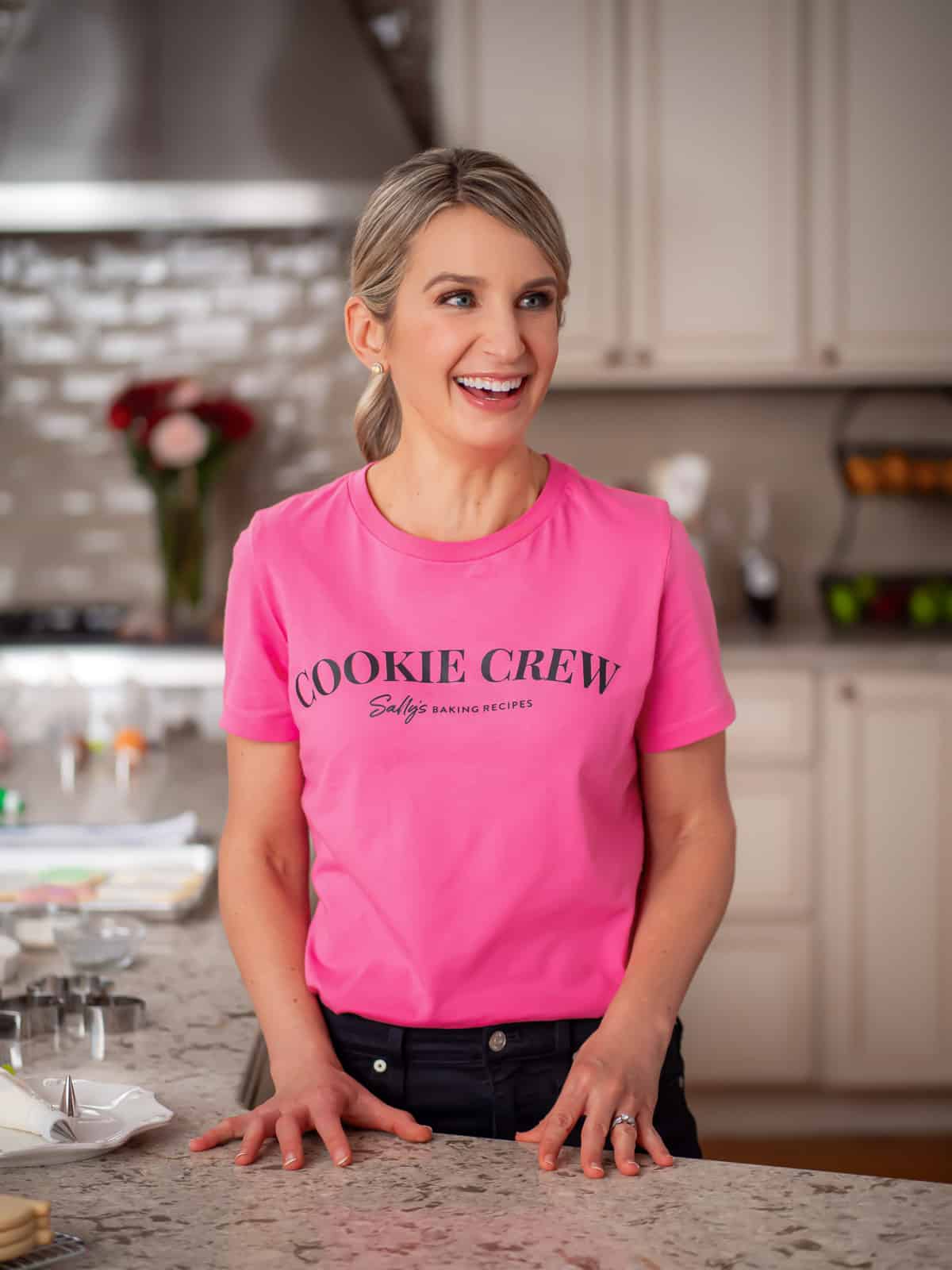 Now you can wear your love of baking on your sleeve! Just like with my recipes, the team at Sally’s Baking tested tons of tees in order to bring you the very best quality. These soft shirts come in lots of great color options, and sizes are available in Women’s (XS–3XL), Unisex (XS–3XL), and Children’s (baby, toddler, and youth sizes). We partnered with family-run small business Bella Bean Studios to print and ship the shirts worldwide. PLEASE NOTE: Because this is a small business, the shop does not accept returns, so please reference the sizing chart before ordering.
